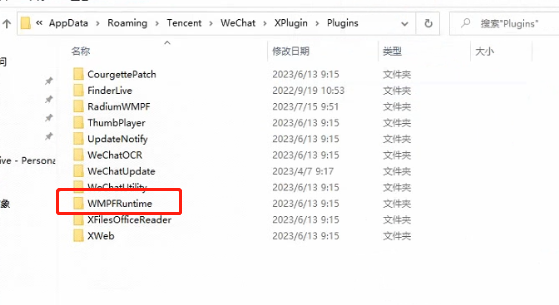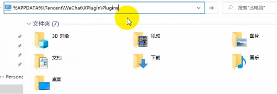 打开文件管理(我的电脑),地址栏粘贴 %APPDATA%\Tencent\WeChat\XPlugin\Plugins ,回车(确认)。