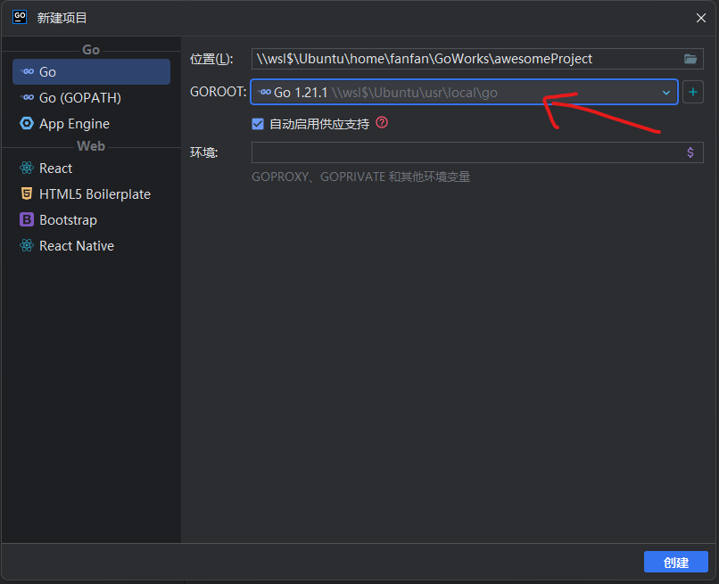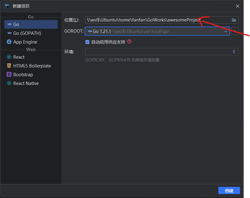 GoLand 创建一个位于 WSL 中的项目,你可以在 WSL 环境中开发和生成项目,而无需离开 IDE。